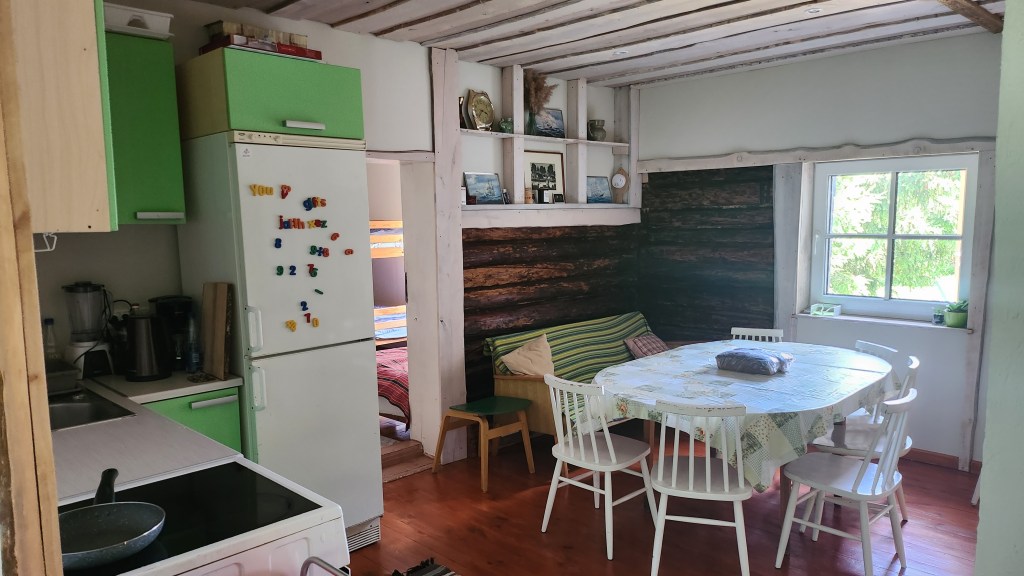 Nuki talu väljastVäliköökSaun ja kümblustünnMajas sees on kaks veega wc-d, väljas kuivkäimla ja boileriga välidušš.Pääs teisele korruseleSuur magamistuba. Seintel minu vanaisa vanaonu maalitud pildid.Köök majasPesuruum majasHommikusöögi kindel osa – värske kihnu leib ja sai!Heade mõtete koht 🙂